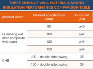 Wall state new energy-saving composite wall board surface layer using special fiber reinforced cement slab and inner layer of foam concrete formed honeycomb structure and plate and plate groove links have good sound absorption and sound insulation effect, 100mm thick wall insulation 42dB, much higher than other brick wall sound insulation effect, meet the requirements of national residential sound insulation effect.